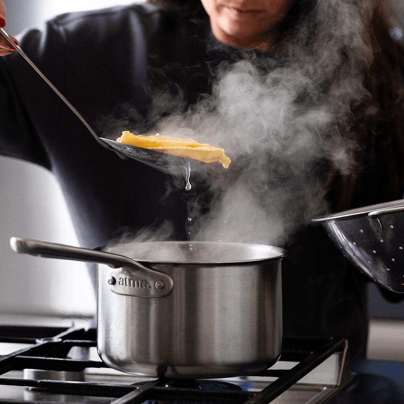 At Atma, we believe every home cook deserves the same quality as top chefs cooking in the best restaurants. That’s why our saucepans are made from 3-ply stainless steel from base to rim. Optimal heat distribution, quicker results, and pinpoint precision for mouthwatering results, every time. And yes, 3-ply stainless steel is compatible with every cooking surface - induction, gas, electric, ovens, and ceramic - and is dishwasher safe.