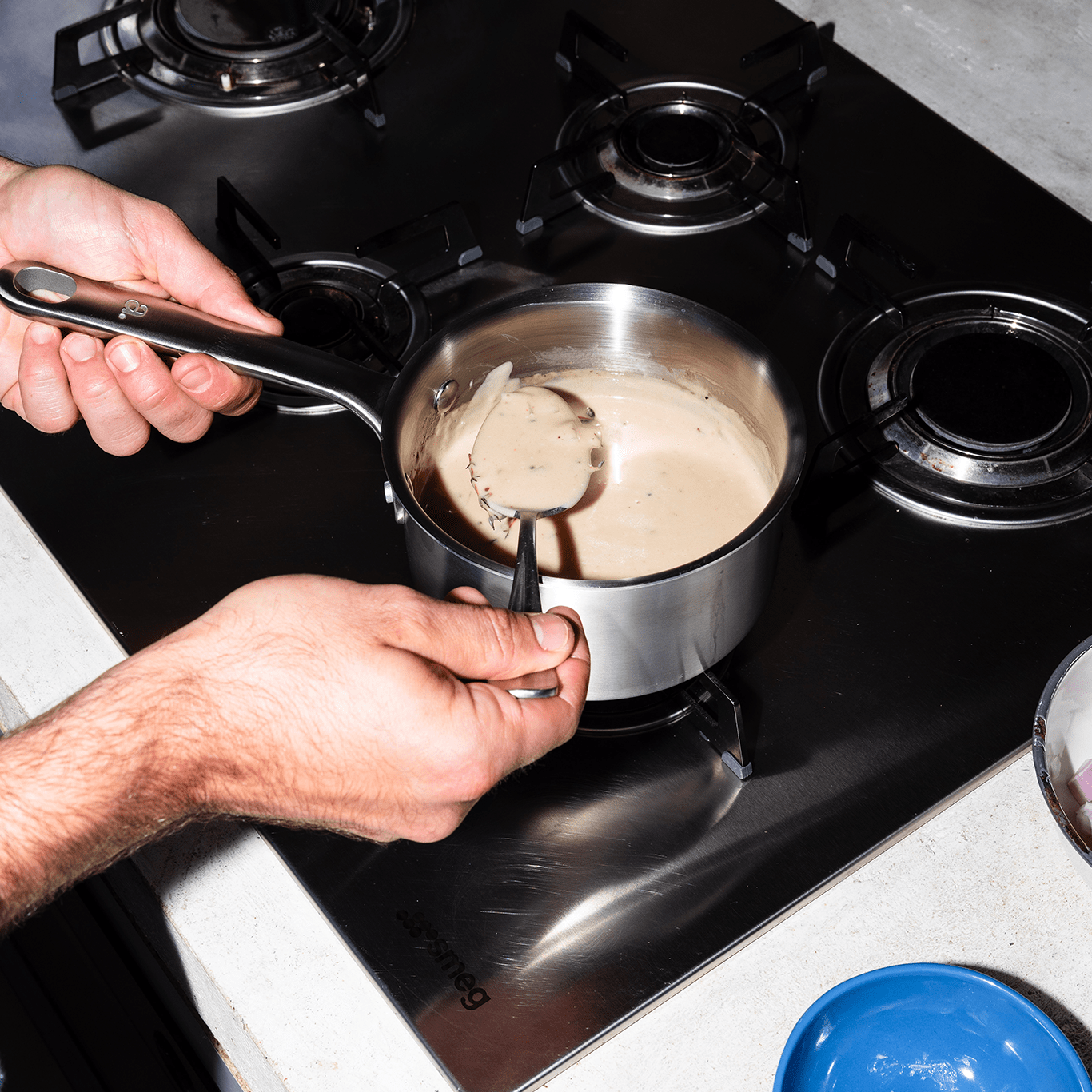 Because it’s a material that revolutionises the way we cook, creating saucepans that genuinely raise the bar. We use a 3-ply stainless steel that’s 2.3mm thick and made up of three layers:
