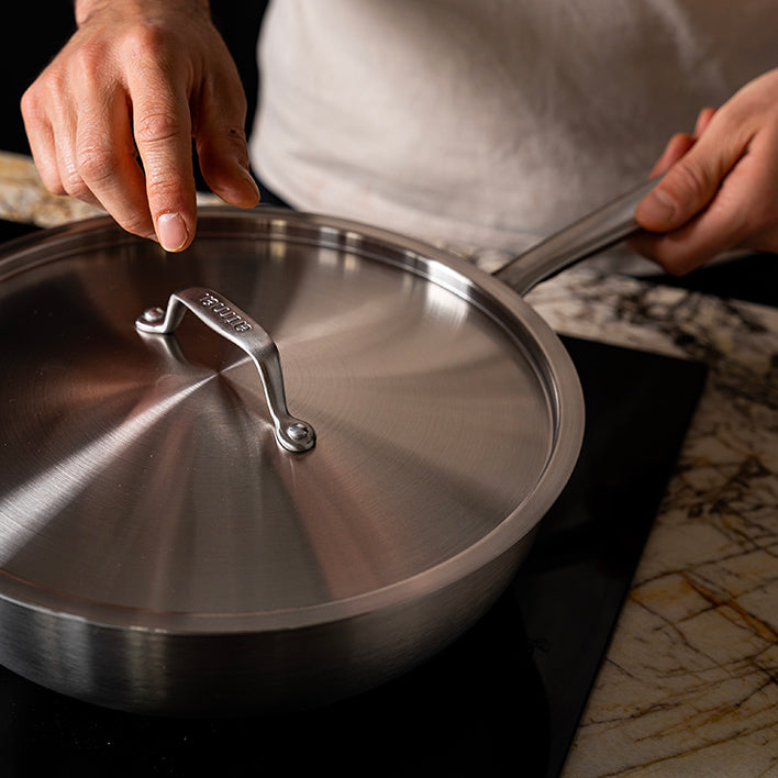 At Atma, we believe every home cook deserves the same quality as top chefs cooking in the best restaurants. That’s why our frying pans are made from 3-ply stainless steel from base to rim. Optimal heat distribution, quicker results, and pinpoint precision for mouthwatering results, every time. And yes, 3-ply stainless steel is compatible with every cooking surface - induction, gas, electric, ovens, and ceramic - and is dishwasher safe.