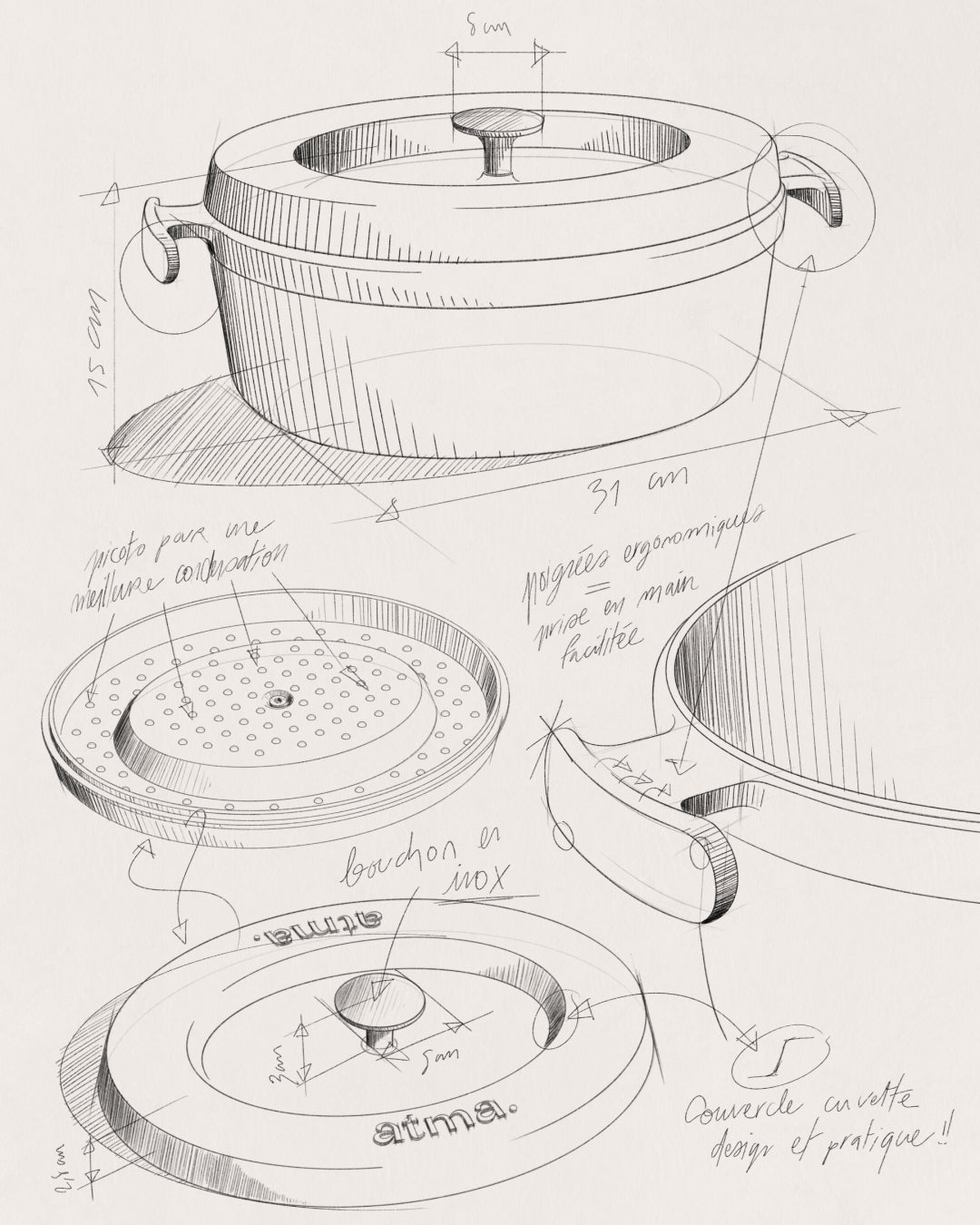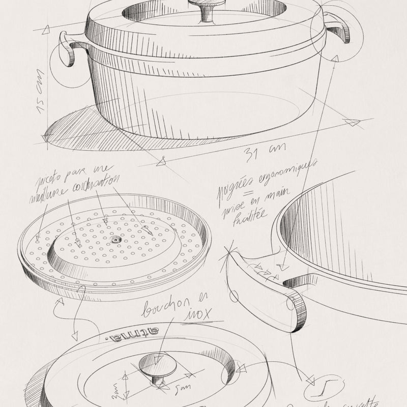 The material? Metal fired up to 1400°C: a thick cast iron that spreads and retains heat like no other. It sears, it simmers, it locks in flavors. Nothing evaporates, everything infuses.