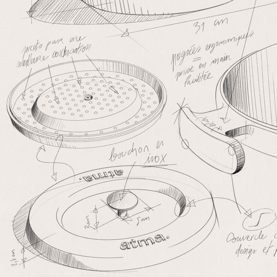 Nous garantissons la cocotte en fonte à vie chez Atma. Une cocotte traverse le temps et les générations. Avec un usage et un entretien précotionneux, votre cocotte en fonte vous accompagnera au fil des années.