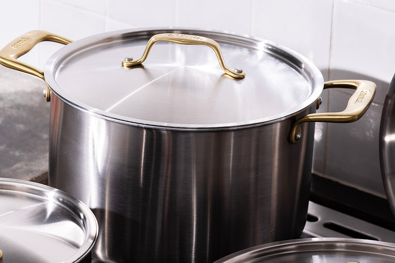 Chez Atma, on souhaite que les passionné.es et amateurs de cuisine puissent s’offrir la même qualité que les chef.fes des meilleurs restaurants. C’est pourquoi nous avons opté pour un inox 3 couches sur toute la surface pour une diffusion optimale de la chaleur : vos préparations sont plus rapides, plus précises et évidemment plus savoureuses. Et oui, on le rappelle, l’inox 3 plis est compatible avec tous les types de feux et donc compatible induction, gaz, électrique, four et plaques vitro-céramique.