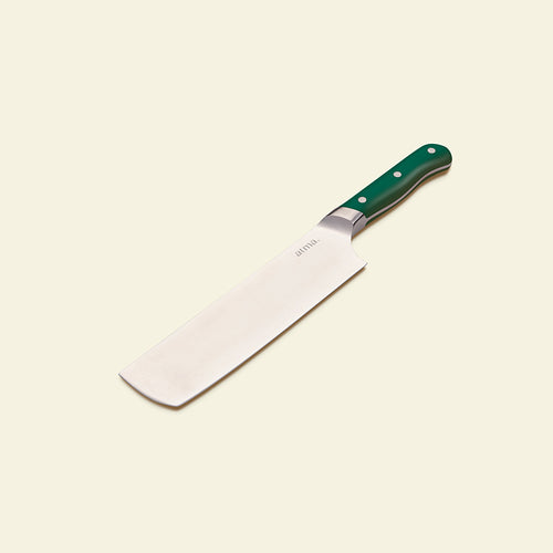 Nakiri and Santoku knives, both Japanese, differ in that the Nakiri has a straight blade and the Santoku has a curved blade. Nakiri knives are perfect for precise cuts of vegetables and make them easy to pick up. Santoku knives are more versatile and excel at slicing and dicing. The choice between the two depends on your personal preferences and needs: the Santoku for increased versatility, the Nakiri for precise cutting of vegetables.