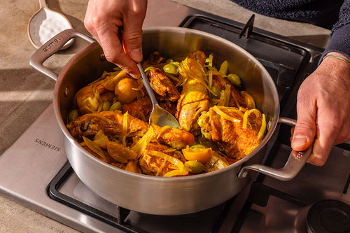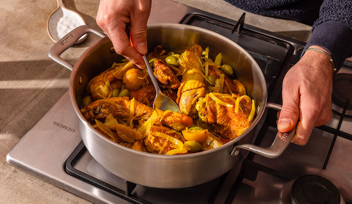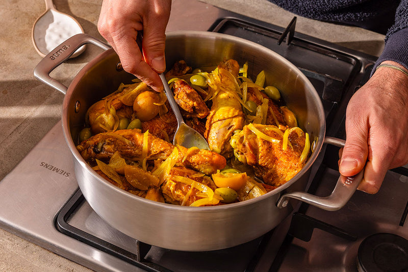 Faites un peu de place sur la table : le rondeau adore se poser au milieu. C’est un indispensable pour tout cuisinier qui aime recevoir et partager : sa grande surface de cuisson et sa grande contenance permettent de préparer des recettes généreuses et volumineuses comme les plats en sauce ou les one-pots. Son couvercle (fourni !) le scelle parfaitement pour cuire à l'étouffée ou même terminer vos cuissons au four (il rentre, grâce à l’absence de manche). En plus d’être beau pour le service à table.
