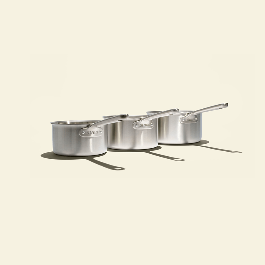 At Atma, we believe every home cook deserves the same quality as top chefs cooking in the best restaurants. That’s why our saucepans are made from 3-ply stainless steel from base to rim. Optimal heat distribution, quicker results, and pinpoint precision for mouthwatering results, every time. And yes, 3-ply stainless steel is compatible with every cooking surface - induction, gas, electric, ovens, and ceramic - and is dishwasher safe.